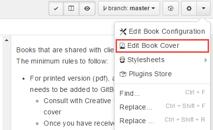 - For printed version (pdf), a cover is necessary and it needs to be added to GitBook manually